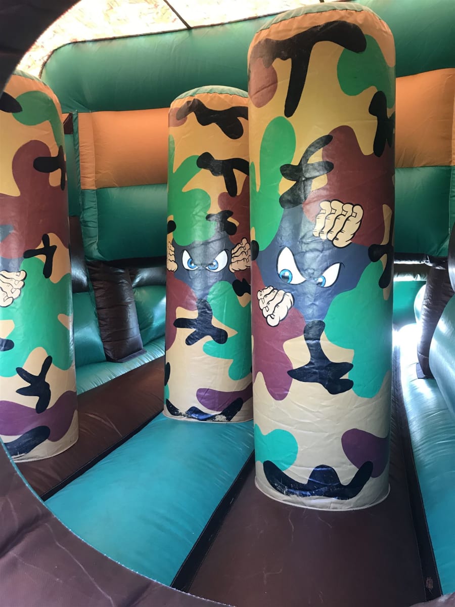 This is a real eye catching assault course that we are proud to bring you and is built to the highest specification, the competitors line up out side the inflatable and will run through a squeeze tube before fighting there way past the biff bash points and crawling on there belly to get under some of the obstacles before climbing there way up a ladder and sliding down to victory.