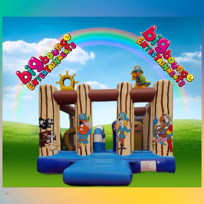 fantastic pirates theme play activity park this is for children 8 years of age & under its been a fantastic product as it has so much things going on there are bish bash pillars, tunnels to climb through, bouncy areas it’s like a mini assault course your children will have hours of fun on this inflatable. Let them wiggle through the tunnels bounce around with the bish bash pillars truly an amazing inflatable
