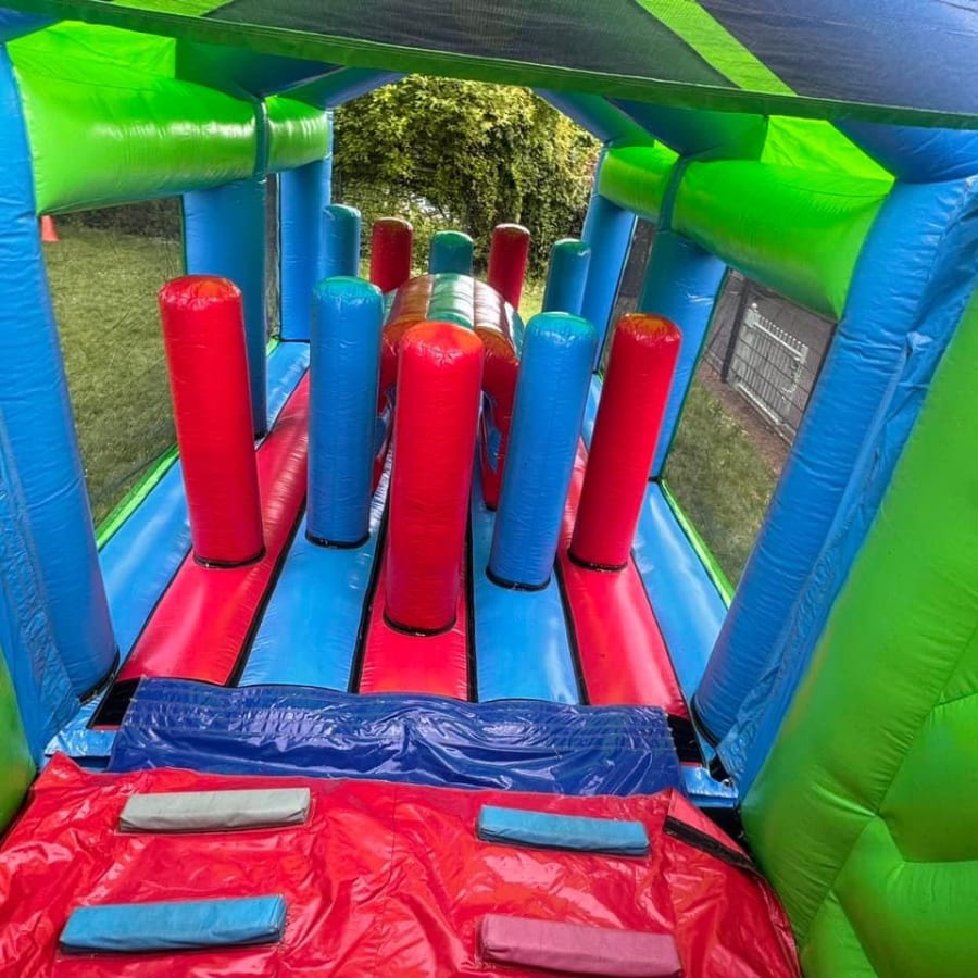 The whopping great obstacle course incorporates an up and over slide, biff and bash, and bouncing area, hurdles, whackers, biff and bash posts, mini humps, obstacle humps, crawl through tunnels and much much more!. Make your day with this modern obstacle section. The inflatable obstacle course offers a safe entrance way with full theming, followed by a random series of obstacles including a series of biff and bash pillars, cool chill out area in the middle, Hurdles and finished with an adrenaline fueled slide at the end. The obstacle course is the perfect choice for any children or adults event.