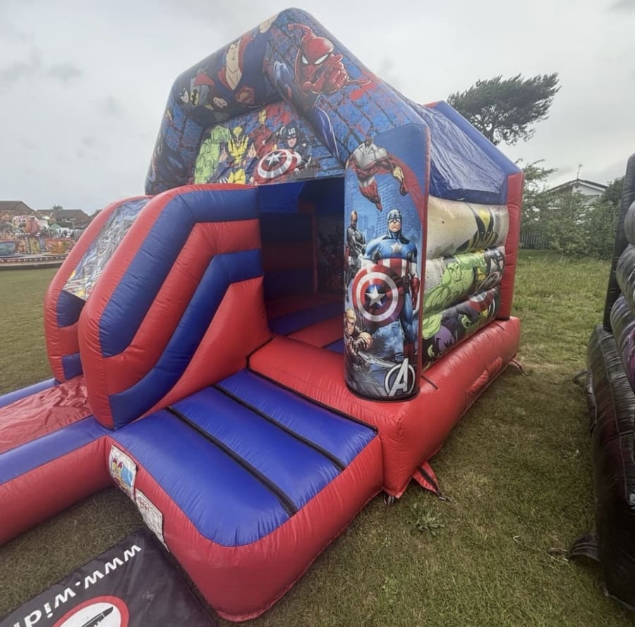 Impress your guests and make memories that last with the Marvel Avengers Front Slide DISCO Combi. Ideal for birthdays, school fairs, family events, and more, this inflatable attraction brings superhero action and disco fun together for an unforgettable party experience. Book now and let your little heroes bounce, slide, and dance the day away!