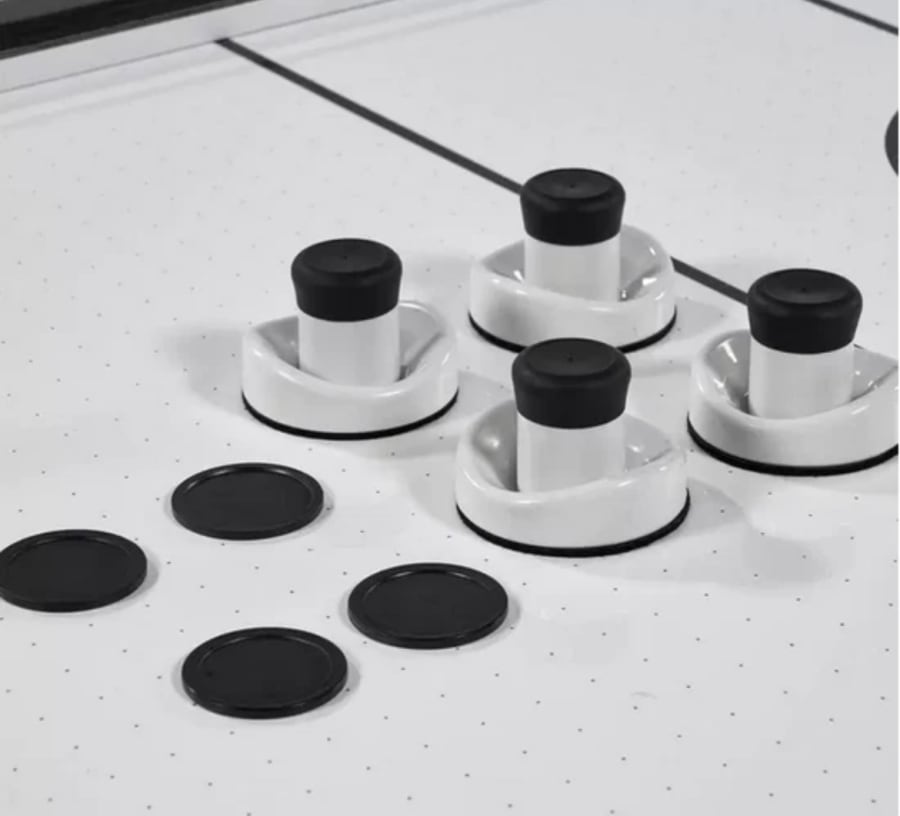 Go one-on-one, or in teams of two as you try to be the first to score ten goals against the opposition. The players use the paddles to knock the puck along the surface of the table, which is covered with holes to allow air to flow through from the fan underneath lifting the puck slightly off the surface, allowing it to glide.