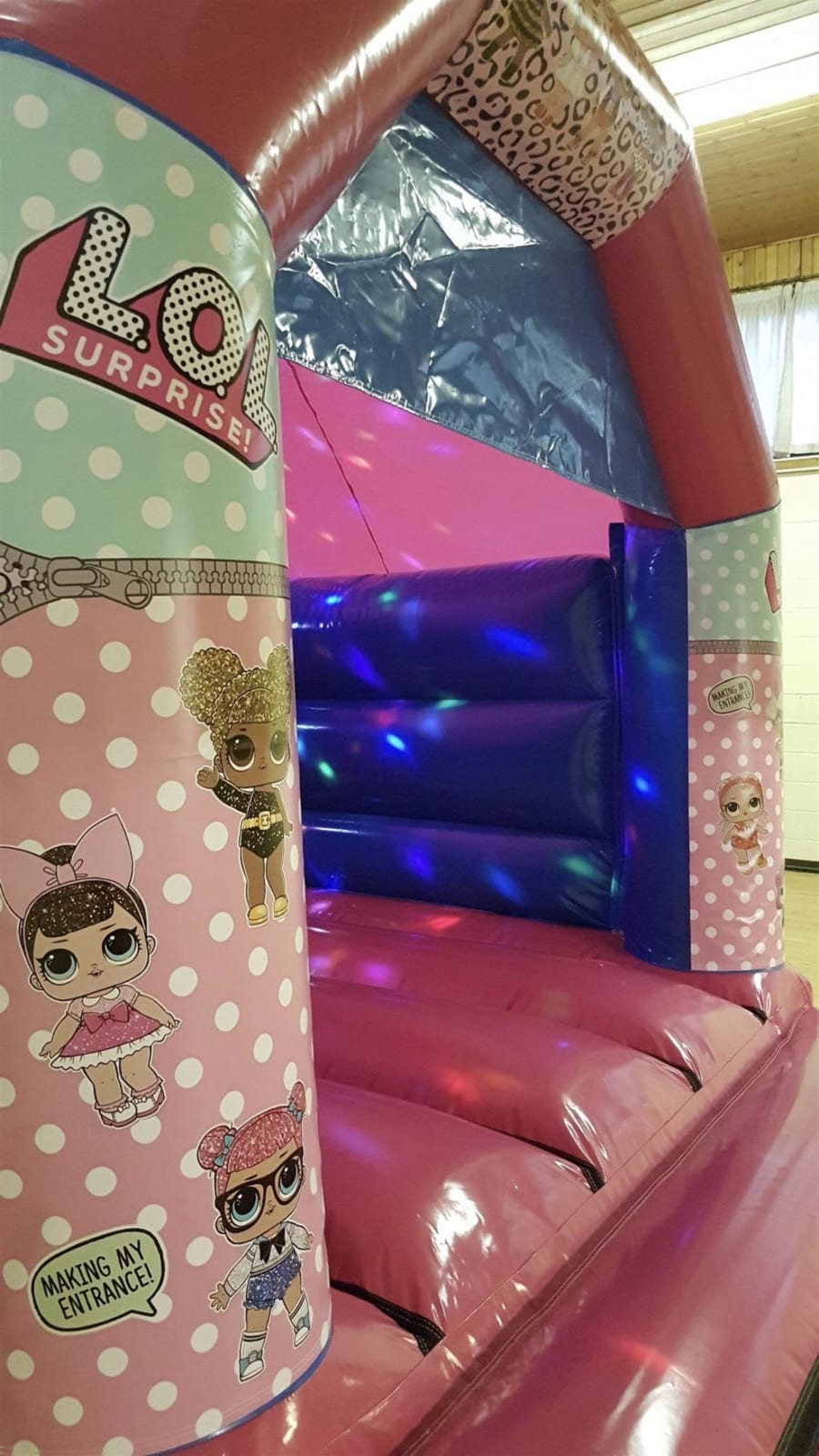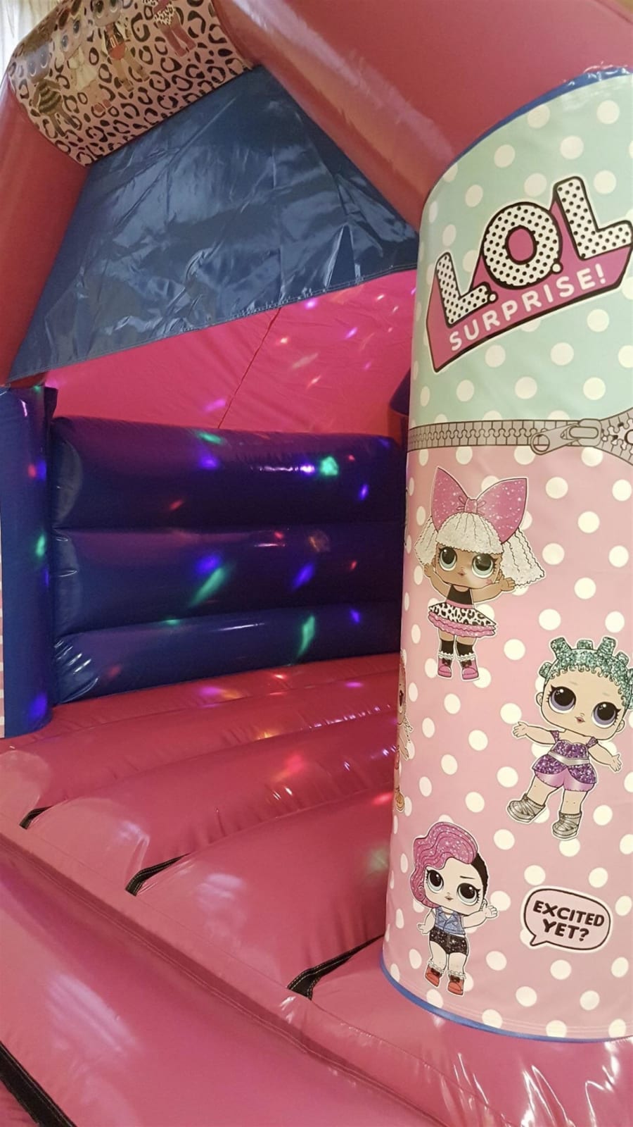 Wow this is just an amazing bouncy castle which girl doesn’t like lol dolls in full gloss this bouncy castle will make any girls party truly amazing also with its built in Bluetooth p,a system and led disco lights it’s just connects upto any Bluetooth device so you can play your very own music inside the castke truly amazing for any lol doll fanatic!!