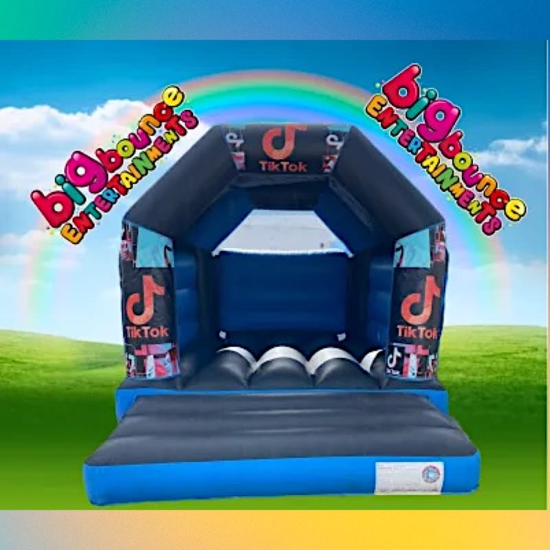 Very popular Tik tok bouncy castle for hire very bright vibrant unisex colours this is one of our most popular size castles fits in most gardens, on arrival will be fully set up and safety checked by our team,