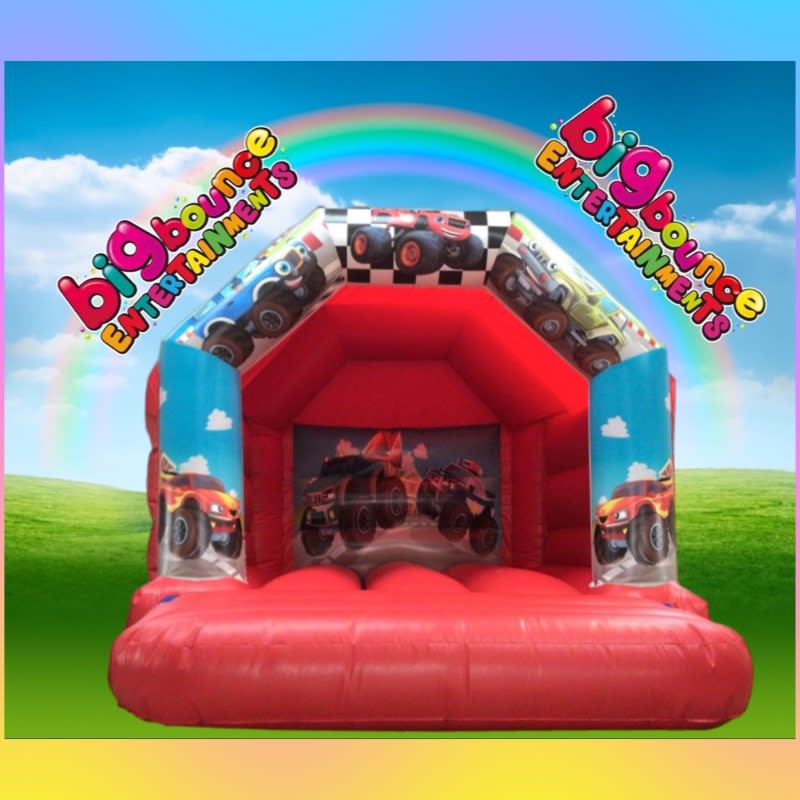 monster truck bouncy castle which looks absolutely amazing with artwork on the front pillars and on the back wall this inflatable will make that special birthday extra special. To book this inflatable please book online using our live online booking system or give the team a call today on 07429 659400