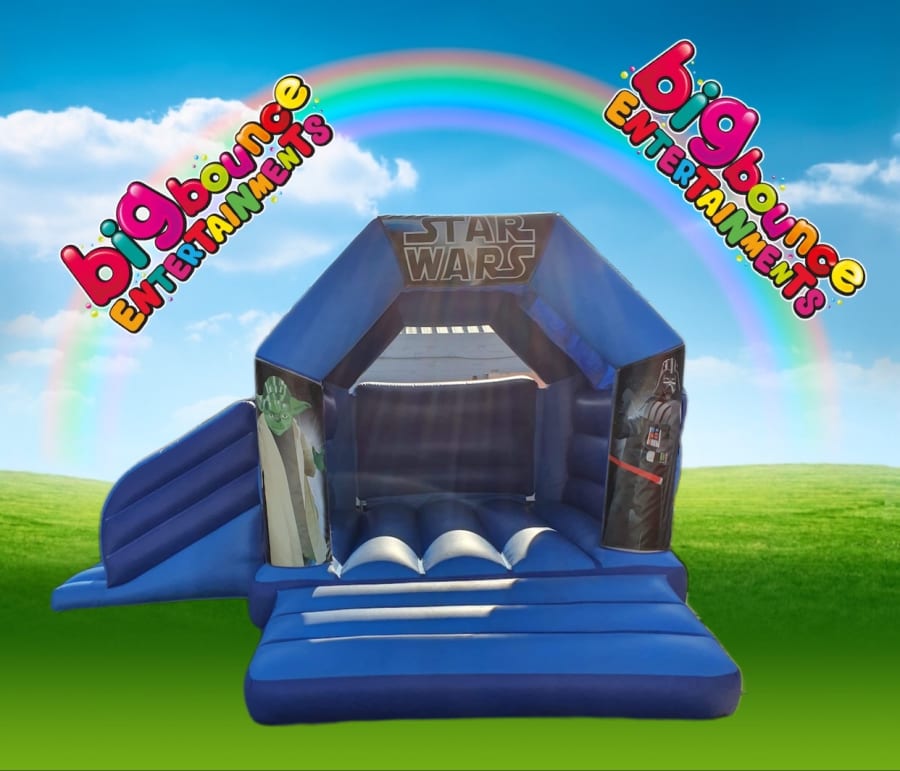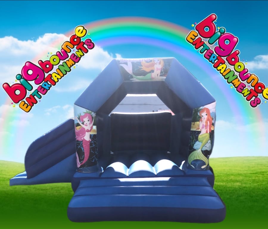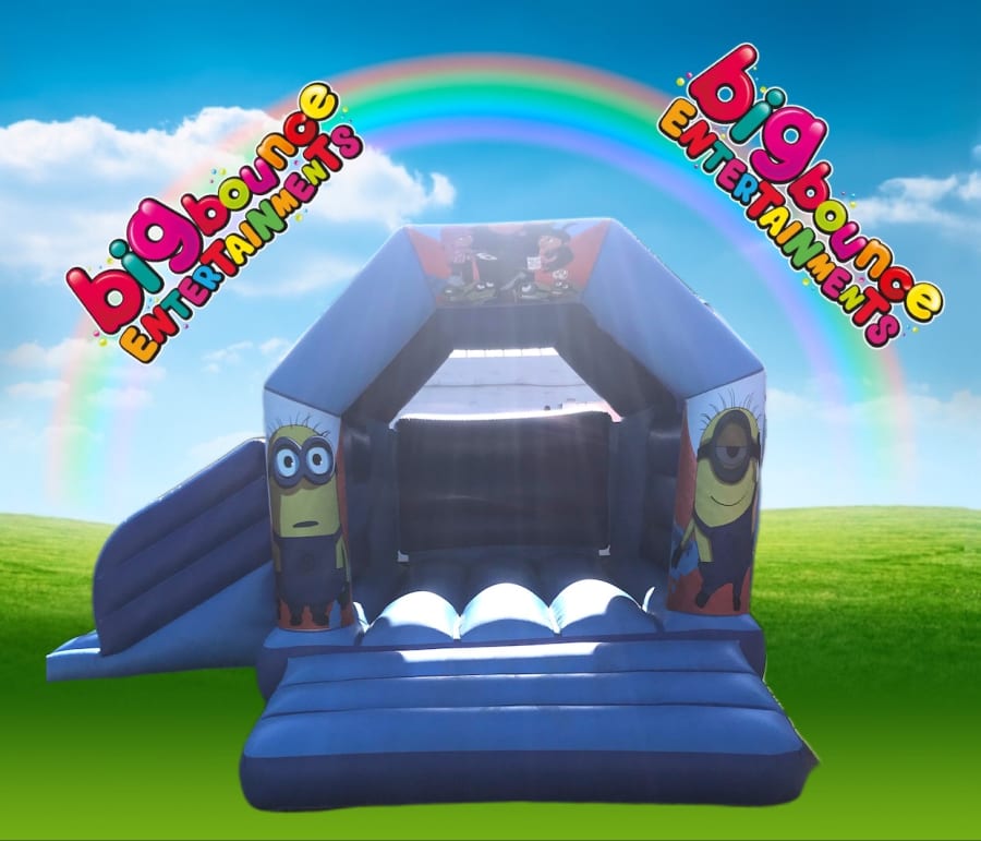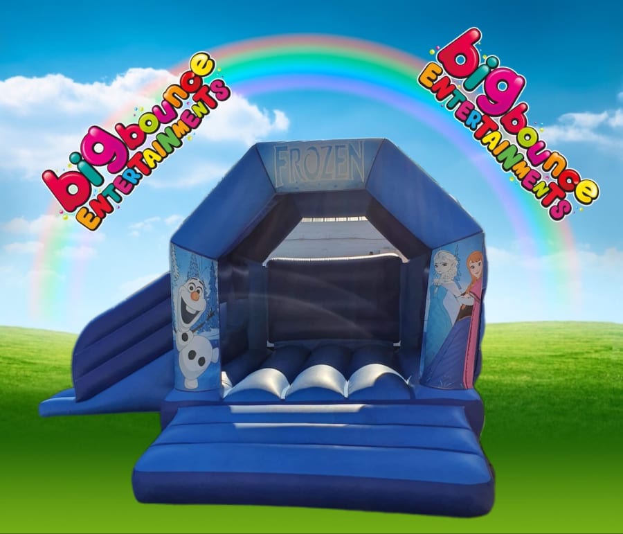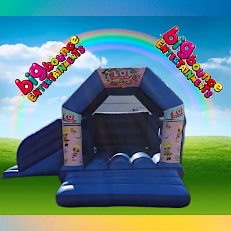 bouncy castle combi with side slide what’s better that having a bounce and a slide all in one inflatable, please note we have many different themes for this Combi I.e frozen, lol dolls, mermaids, super hero, peppa pig, Minnie Mouse, all shown in the “Extra images” please note you MUST quote your theme upon booking.