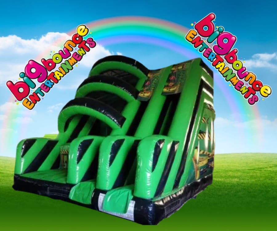 wow what an amazing inflatable this really is brand new to our hire fleet is this toxic drop jump & slide 20ft x 18ft & 18ft tall it’s a monster !