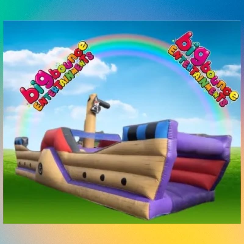 Ahoy therewe are proud to bring you from the seven sea's Big bounce entertainments pirate ship assault course its perfect for any indoor or back garden parties this summer. Featuring biff bash pirates and a small slide featuring a pirates mast it will really leave a lasting impression on your guest's.
