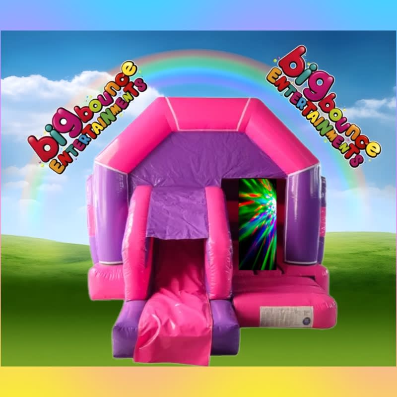 Looking to make your next event unforgettable? Our Disco Combi Disco themed combi (select your own theme) in Dewsbury, Bradford, Leeds, Wakefield, throughout West Yorkshire is the perfect choice for children’s parties, family gatherings, school fairs, and any celebration that needs a unique twist! Bursting with energy, colour, and excitement, this 11x16ft bouncy castle comes with a thrilling front slide and a party-ready atmosphere.