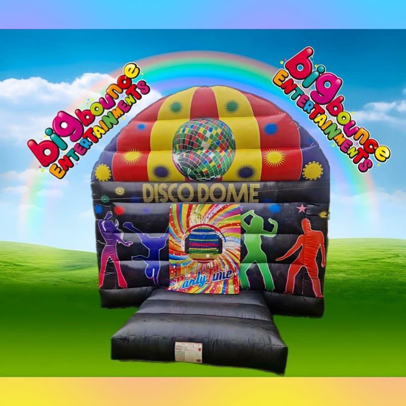 Reserve the Disco dome for reliable bouncy castle hire. Delivery and setup available across Leeds, Dewsbury, Bradford & throughout West Yorkshire. Fast quotes. Professional installation. Stress-free parties. đ