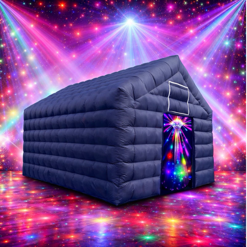 The Party Cube isn’t just a tent—it’s a full-blown nightclub right at your doorstep. Measuring a spacious 18ft x 18ft x 14ft, this inflatable venue is designed to accommodate your guests comfortably, offering plenty of room to dance, mingle, and enjoy the excitement.