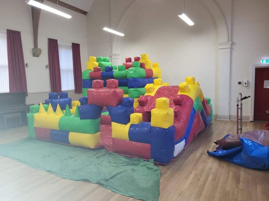 This inflatable play park is a fast growing craze for indoor & outdoor parties in West Yorkshire The play centre is a huge size at 15ft x 15 ft, this is the same size of our adult bouncy castles.
